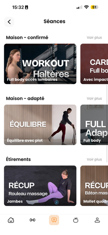 Des programmes sportifs disponibles directement sur l'application. Que cela soit du renforcement musculaire,